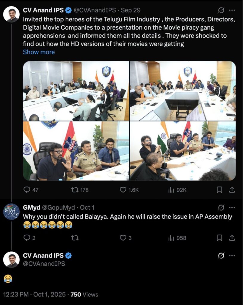 Hyderabad: A single emoji reply on X (formerly Twitter) triggered a major controversy involving senior IPS officer CV Anand and fans of actor and MLA Nandamuri Balakrishna, leading to intense online debate over the last two months. The issue resurfaced strongly this week after a tweet accusing the officer of “mocking a legendary actor and public representative” went viral, demanding a public apology and action from the Telangana Government.