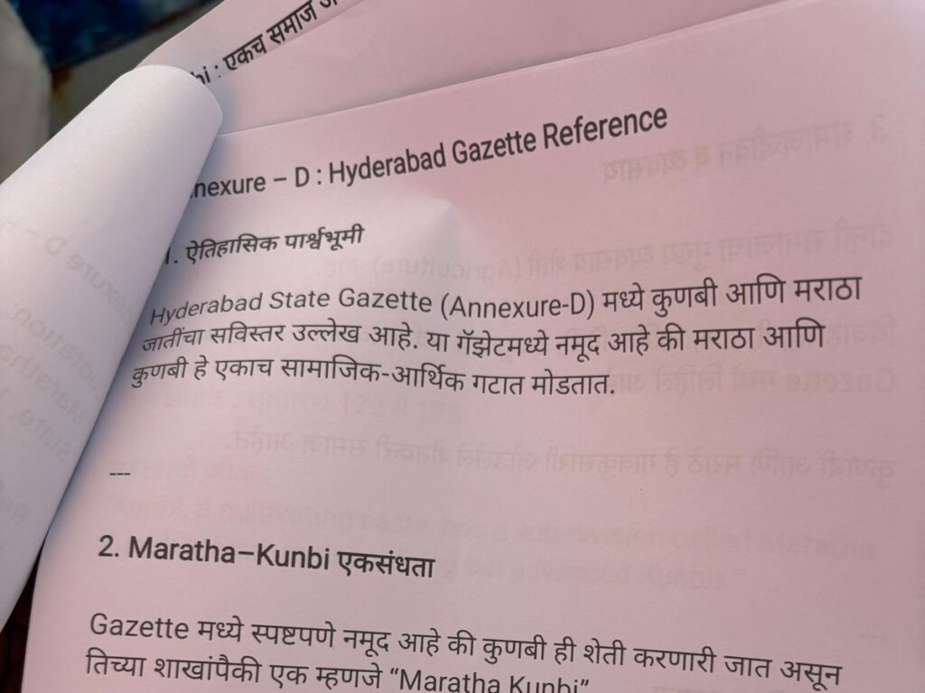 The Hyderabad Gazette of 1918, issued under the Nizam’s administration, recognized “Hindu Marathas” as a community eligible for reservations in education and government jobs. Activists argue that this proves Marathas were historically treated at par with Kunbis.