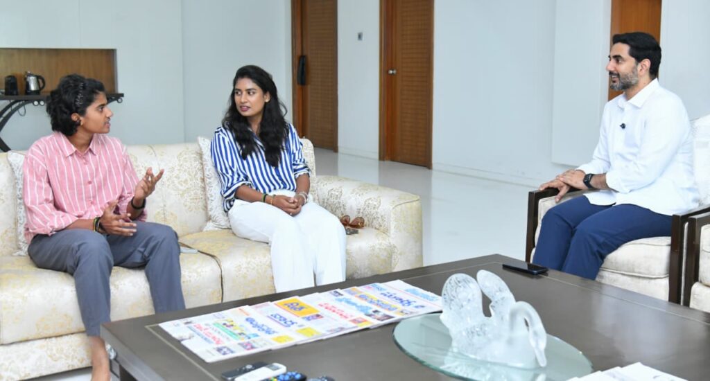 Chief Minister N. Chandrababu Naidu and Minister Nara Lokesh warmly welcomed the players and congratulated Shricharani for her remarkable performance and contribution to India’s Women’s Cricket World Cup victory.